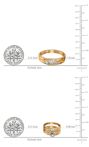 Dazzlingrock Collection 0.10 Carat Round White Diamond Illusion Wedding Trio Ring Set in Yellow Gold Plated Sterling Silver 5
