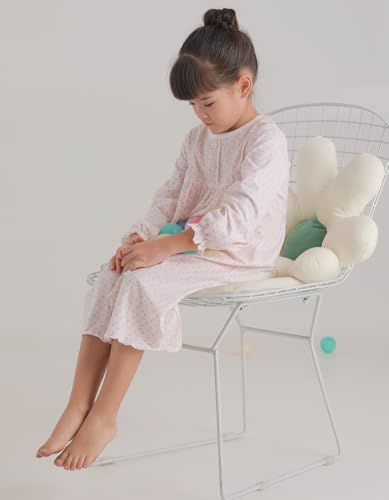 BANGSAUR Girls' White Dress, Princess Cotton Long Sleeve Nightdress,3-12 Years 5