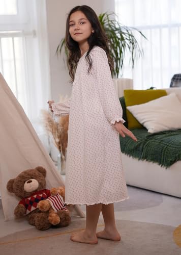 More information about BANGSAUR Girls' White Dress, Princess Cotton Long Sleeve Nightdress,3-12 Years