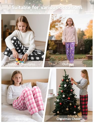 • IDEAL WINTER GIFT & HOLIDAY ESSENTIAL: With its cute, kid-friendly design and practical features, this girls lounge pants is a thoughtful gift for birthdays, Christmas, or winter. This ensures that your child will have stylish and comfortable pants when sleeping, resting or relaxing