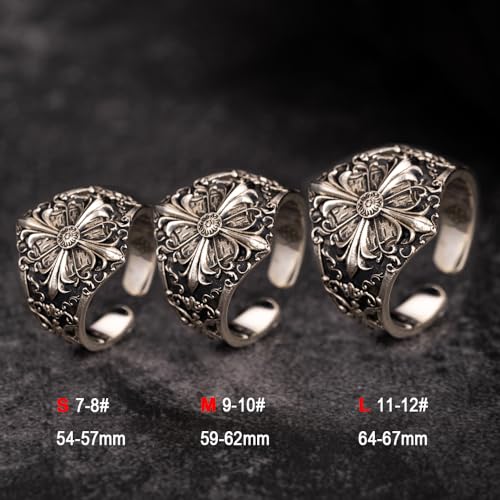 Retro 925 Sterling Silver Fleur de lis Cross Ring Baroque Floral Ring for Men Women Open Adjustable Size S/M/L 7
