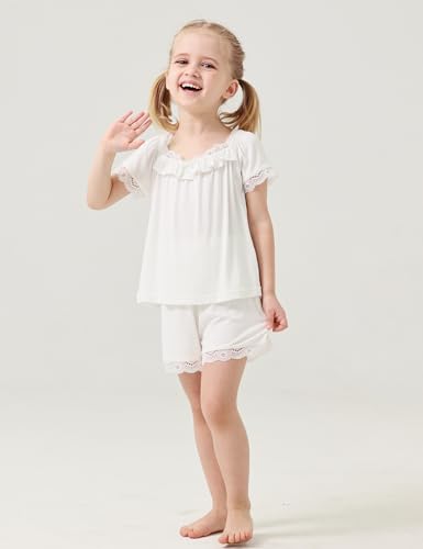 Toddler Girls Short Sleeve Pajamas 2T-6T, Soft Comfy Viscose from Bamboo, Shorts Set Summer Pjs for Little Girls 6