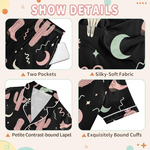 More information about Satin Pajama Sets Short Sleeve Western Themed Seamless Pattern Design_1 Button Down Silky Nightwear 2 Piece PJS 5-14Y