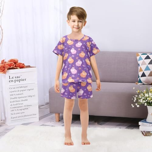 Pajama Short Sets Cute Hippo Purple Soft Cotton Summer Sleepwear 2 Piece PJS Size 5-14T 2