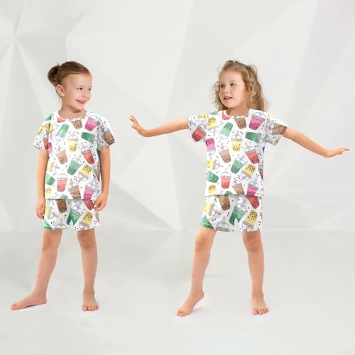 Pajama Short Sets Cartoon Pearls Boba Tea Soft Cotton Summer Sleepwear 2 Piece PJS Size 5-14T 6