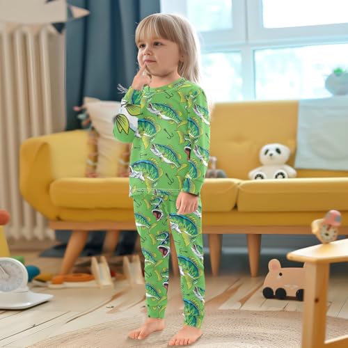 Large Mouth Green Bass Tuna Fish 2-Piece Soft Long Sleeve & Pants PJ Set Jammies Size 8, Cartoon Bait 2