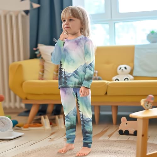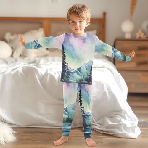 senya Pajama Set Snow Mountain Aurora Starry Sky 2 Piece Pjs Set Fit Basic Cotton Sleepwear for Daily-18M 2