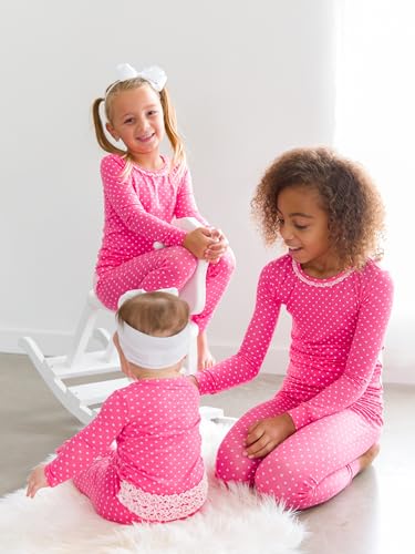 HOT ! RuffleButts SoftSnooze Viscose from Bamboo Girls Ruffle Long Sleeve Pajama Set - Hot Pink Heart Kids, 7/8