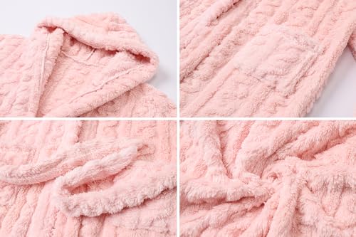 More information about Umeyda Girls Bathrobe, Cute Comfy Soft Fleece Hooded Bath Robe With Belt Pockets, Twist Pink, M