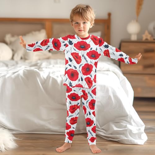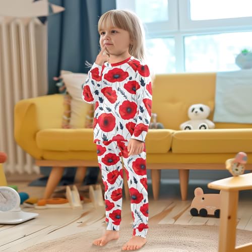 SPRIPORT Red Flowers Poppies White Soft Comfy Pajama Set Sleepwear 2 Piece Pjs Set Cotton Long Sleeve Top and Pants 6
