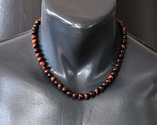 More information about Natural Red Tiger Eye Beaded Choker, Genuine Red Crystal Necklace, Fancy Gemstone Choker, 8mm Beads, Unique Fashion Jewelry, Healing Crystal Chakra Necklace, Durable Necklace, Capricorn Necklace
