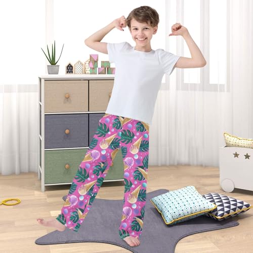 Pajama Pants Lounge Sleep PJ Bottoms Sleepwear Elastic Waist Drawstring S Dreamy Ice Cream Palm Leaf 1