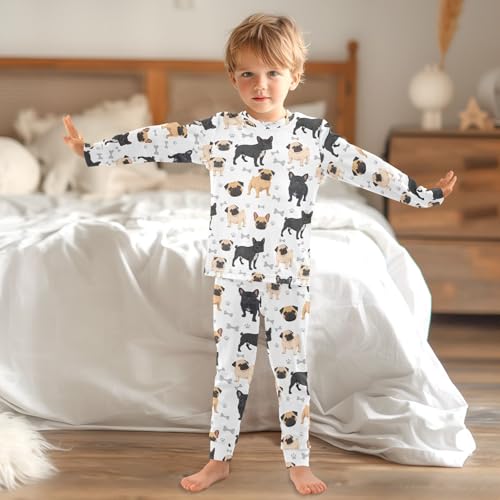 Pigsaly Pajama Set 2 Piece Pug Dog Paw Print Cute Black Brown Bulldog Pajama Sets Long Sleeve Pjs Sleepwear 3T 4