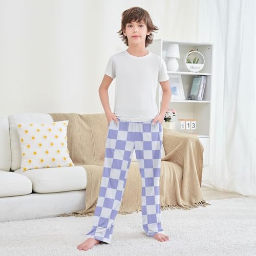 HOT ! Purple Checkerboard Pajama Pants Long Sleep Pant Soft PJ Bottoms Sleepwear
