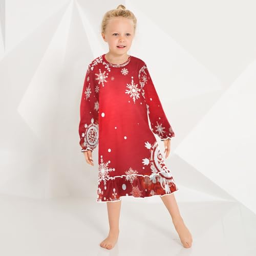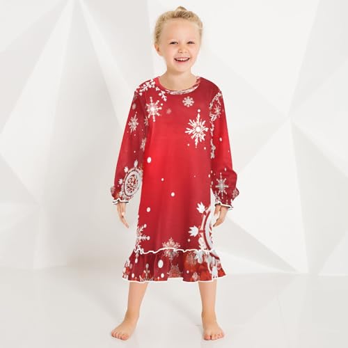 Bolaz Nightgowns Sleepwear Lightweight Nightdress Soft Pajamas Dress Christmas White Snowflakes for 3-10 Years 1