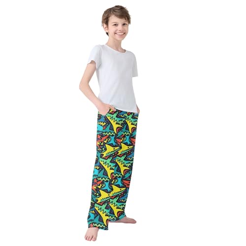 Cartoon Abstract Sharks Pajama Pants Lounge Sleep Pants Elastic Waist Long Pajama Bottoms with Pockets for 6-14 Years 7