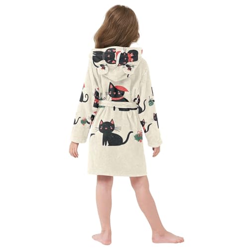 GuoChe Adorable Black Cat Hooded Bathrobe For Girls Kids Robes For Girls Size 6-7 6