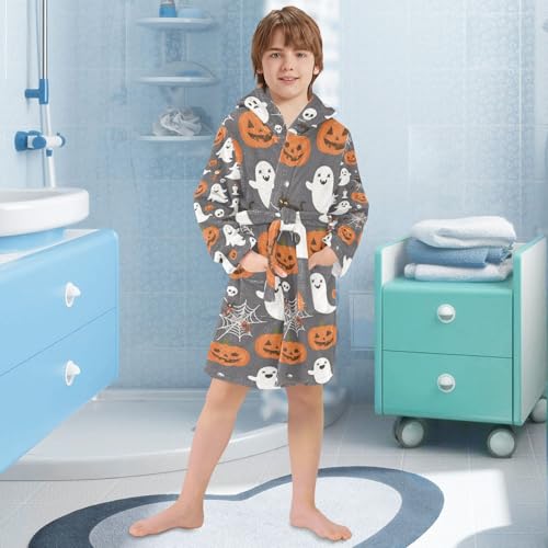 GuoChe Gray Pumpkin Halloween Pattern Children Robes Hooded Robes 5