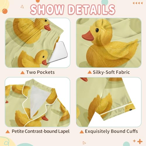 Satin Pajama Sets Short Sleeve Yellow Rubber Ducks Pattern Button Down Silky Nightwear 2 Piece PJS 5-14Y 1