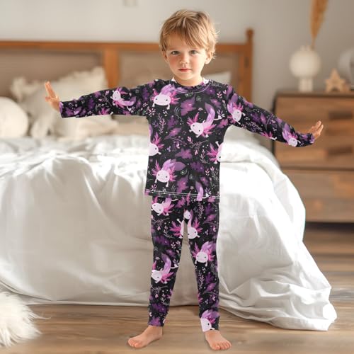 ALAZA Axolotl Cute Black Blossom Pajamas Long Sleeve Sleepwear 2-Piece Pajama Set 1