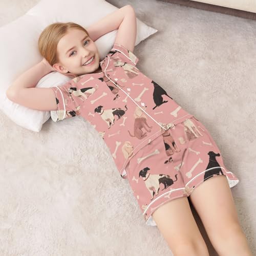 Girls Boys Summer Pajamas Girls' Sleepwear Pajama Sets Short Button Down PJ Sets for Kids Toddle Girl 9-10Y Pink Dog and Bone01 7