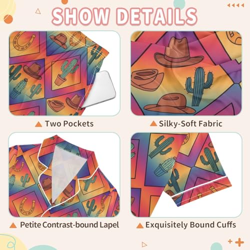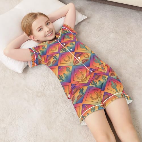 Satin Pajama Sets Short Sleeve Southwestern Themed Pattern Design Button Down Silky Nightwear 2 Piece PJS 5-14Y 1