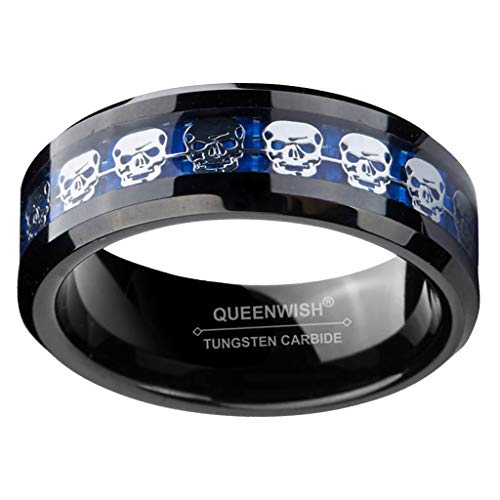 QUEENWISH 8mm Black Skull Rings Silver Harly Mens Tungsten Carbide Wedding Band Engagement Womens Ring Size 5-14 5