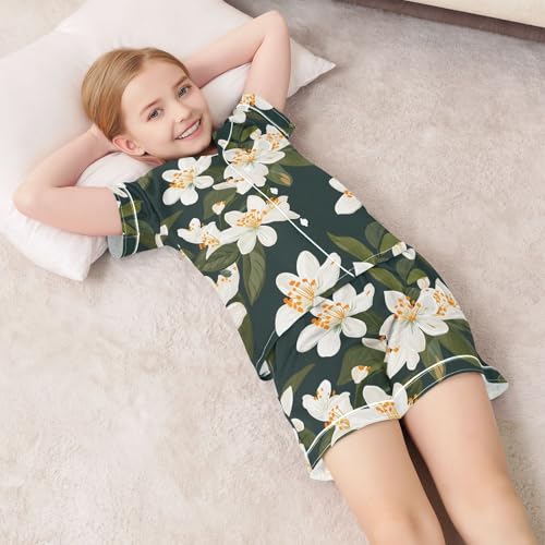 White Jasmine Flower Pajamas Set Summer Button Down Sleepwear Pjs Sets Comfy Loungewear 6