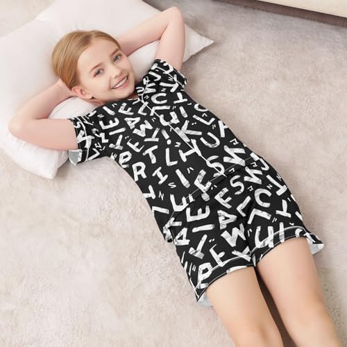 Black Letters Pajamas Set Summer Button Down Sleepwear Pjs Sets Comfy Loungewear 4