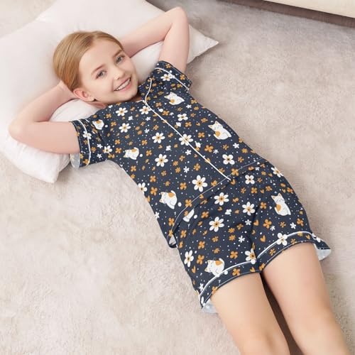 Cute Cat Floral Pajamas Set Summer Button Down Sleepwear Pjs Sets Comfy Loungewear 7