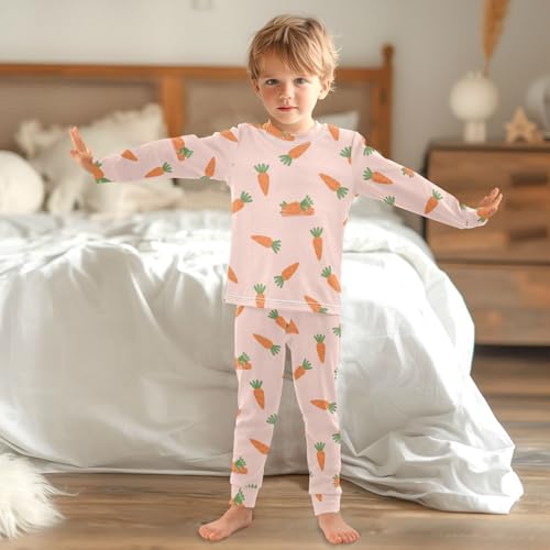 Pajama Sets Long Sleeve Carrot Pattern on Pink Soft Comfy Sleepwear 2 Piece PJS 3-8T 3
