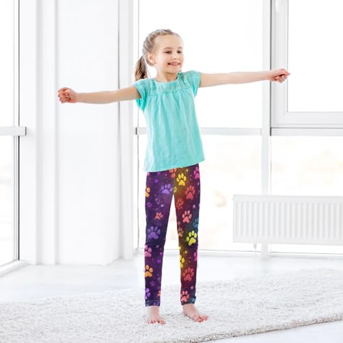 Colorful Glitter Dog Paw Girls Leggings Ultra Soft Compression Yoga Gym Pants for Kids 4-10T 6
