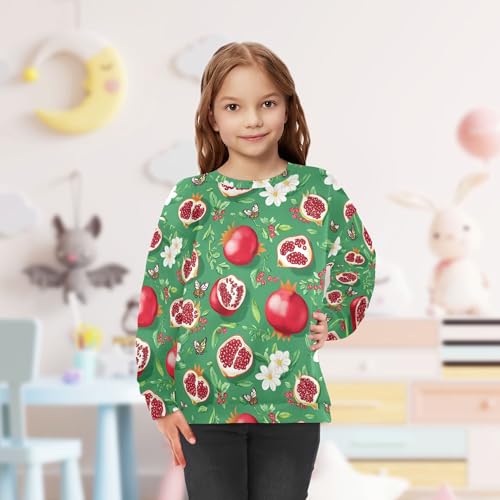 JUNZAN Funny Pomegranate Fruit Green Kids Girls Hooded Sweatshirt Crewneck Sweatshirts for Boys Party 4T 5