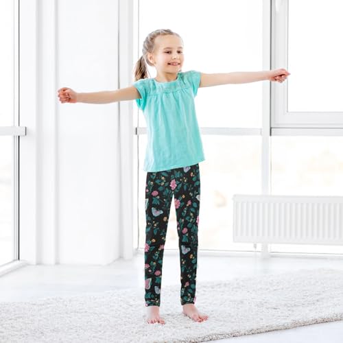 Pink Flower Butterfly Girls Leggings Ultra Soft Compression Yoga Gym Pants for Kids 4-10T 5
