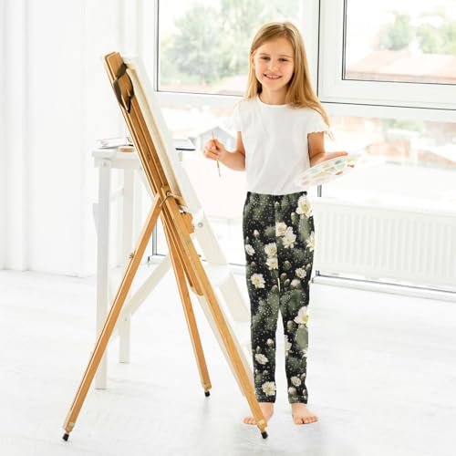 Tropical Green Cactus Flower Girls Leggings Ultra Soft Compression Yoga Gym Pants for Kids 4-10T 7