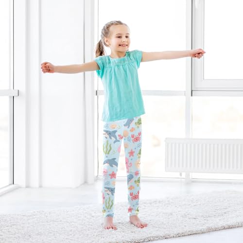 Cartoon Marine Dolphin Jellyfish Seashell Girls Leggings Soft Stretch Workout Yoga Dance Pants for Kids Clothes 6