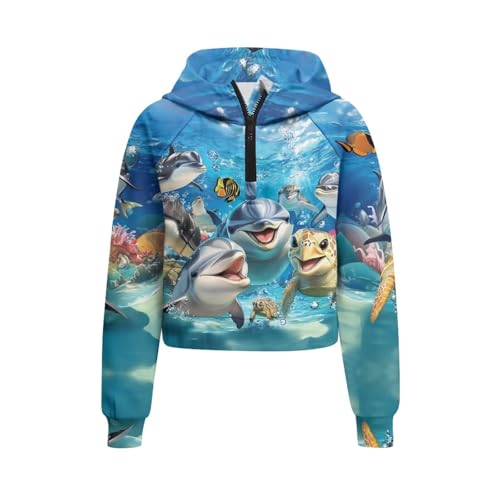 WELLFLYHOM Girls Sweatshirt 5-14T Half Zip Pullover Hoodies Lightweight Cropped Tops Long Sleeve Fall Outfits 7