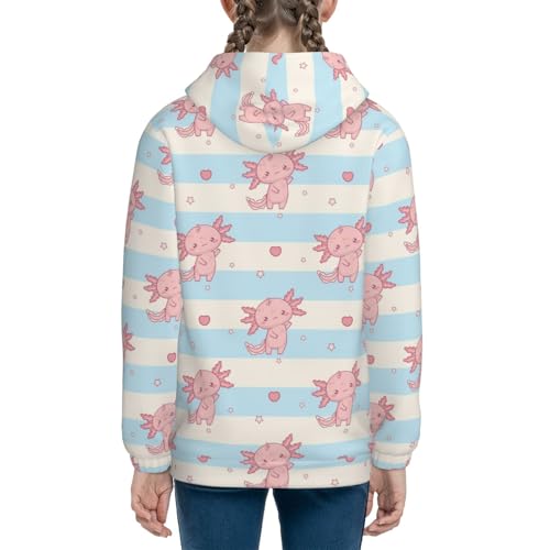 Pink Axolotls Hoodie Youth Hooded Sweatshirt 3D Digital Printed With Pockets Tops 7