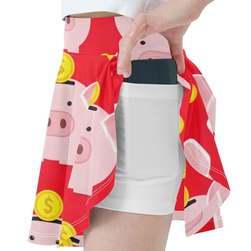 Clothes Athletic Shorts for Girls Skorts Kids Tennis Skirts Little Girl Cute Pink Pig Coins Red 4t 5