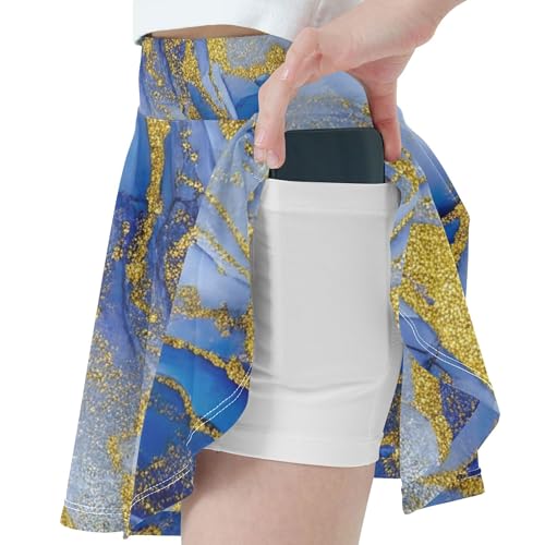 Joisal Girls' Shorts Athletic Skorts Kids Tennis Skirts Fun Cute Pleated Soft Blue Gold Marble Texture 3t 7