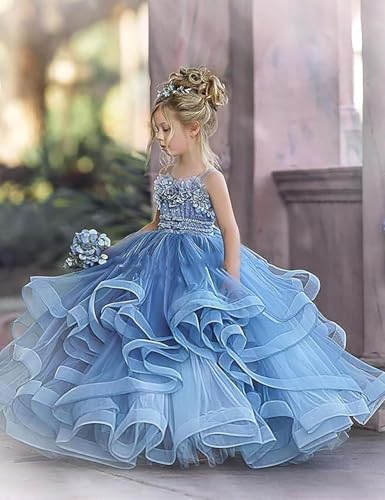 • Features:Features:This 1st communion dress features puffy tulle,lace applique, ruffle tulle, beautiful 3D flowers,spaghetti straps,buttonback,creating a stunning silhouette.Perfect for pageant dress for girls,pageants,weddings,and other special occasions