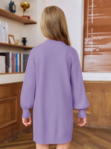 Haloumoning Girls Oversized Sweater Dress Kids Fall Long Lantern Sleeve Ribbed Knit Pullover Dresses 5