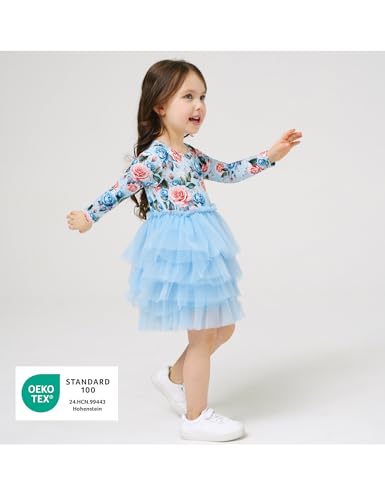 Toddler Girl Tulle Dress, Bamboo Viscose Long Sleeve Tutu Birthday Party Dress Outfits 2-5T 5