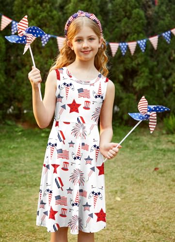 BesserBay Girl's Fourth of July American Flag Dress Stars Stripes Swing Midi Tank Dress 4-14 Years 4