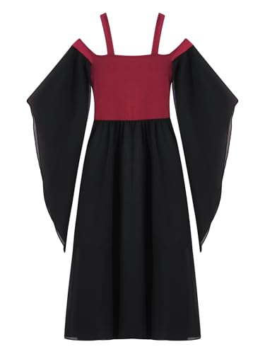 Sxiwei Kids Girls Medieval Renaissance Dress Butterfly Sleeve Lace Up Gothic Dress for Halloween Carnival Party 6