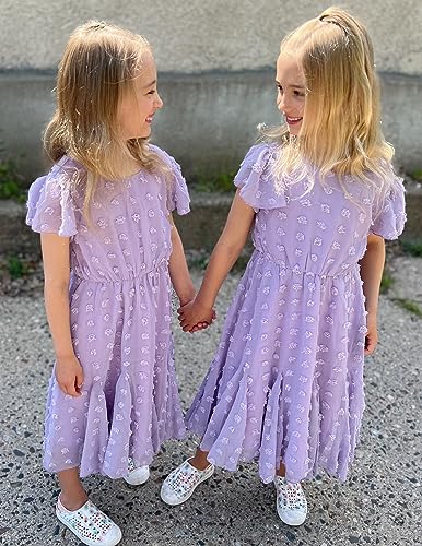 Arshiner Girls Girly Dress Swiss Dot Ruffle Short Sleeve Twirly Cute Dresses for 5-12 Years Old 6