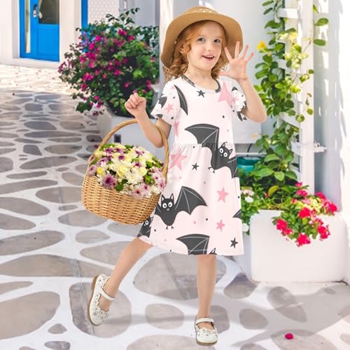 GAIREG Girls Short Sleeve Dress Bats Stars Pink Toddler Sundress Quick Dry Kids Casual Summer Dress, 2T 7