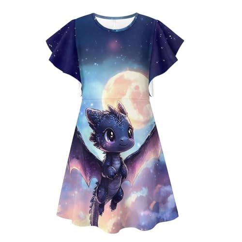 Uourmeti Ruffle Sleeve Dress for Girls Summer Casual Dresses Knee Length Playwear Outfits 6