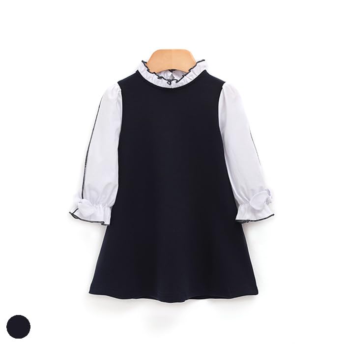 • DESIGN: It is a dress that looks like a separate sleeveless dress and blouse worn together. It gives a neat and formal look. The material is soft cotton which is comfortable for kids to wear and play. The zipper on the back makes it easy to pun on and take off the dress.