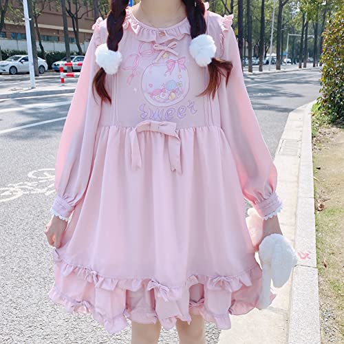 More information about Lolita Cute Dresses for Teen Girls Long Sleeve Chiffon Sweet Kawaii Print Ruffle Casual Short Dress